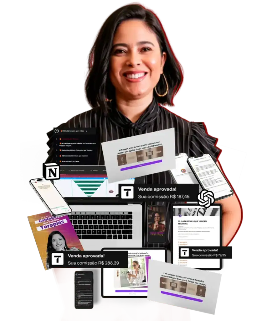 Especialista em estratégias de negócios de terapia, terapeuta e consteladora, criadora da Metodologia Therapy Scale®. Já guiou centenas de terapeutas a criarem conteúdo com propósito e narrativa emocional que vende.